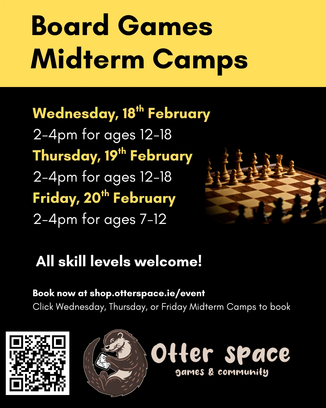 Calling all board game lovers! This small group of 4 is led by Amy, a garda vetted member of Otter space staff. The group can choose to play as many games as they like within the 2 hours, or do a longer, more strategic game. There will be a comfort break at 3pm- snacks and drinks are an additional cost so participants can select their favourite treats 😋